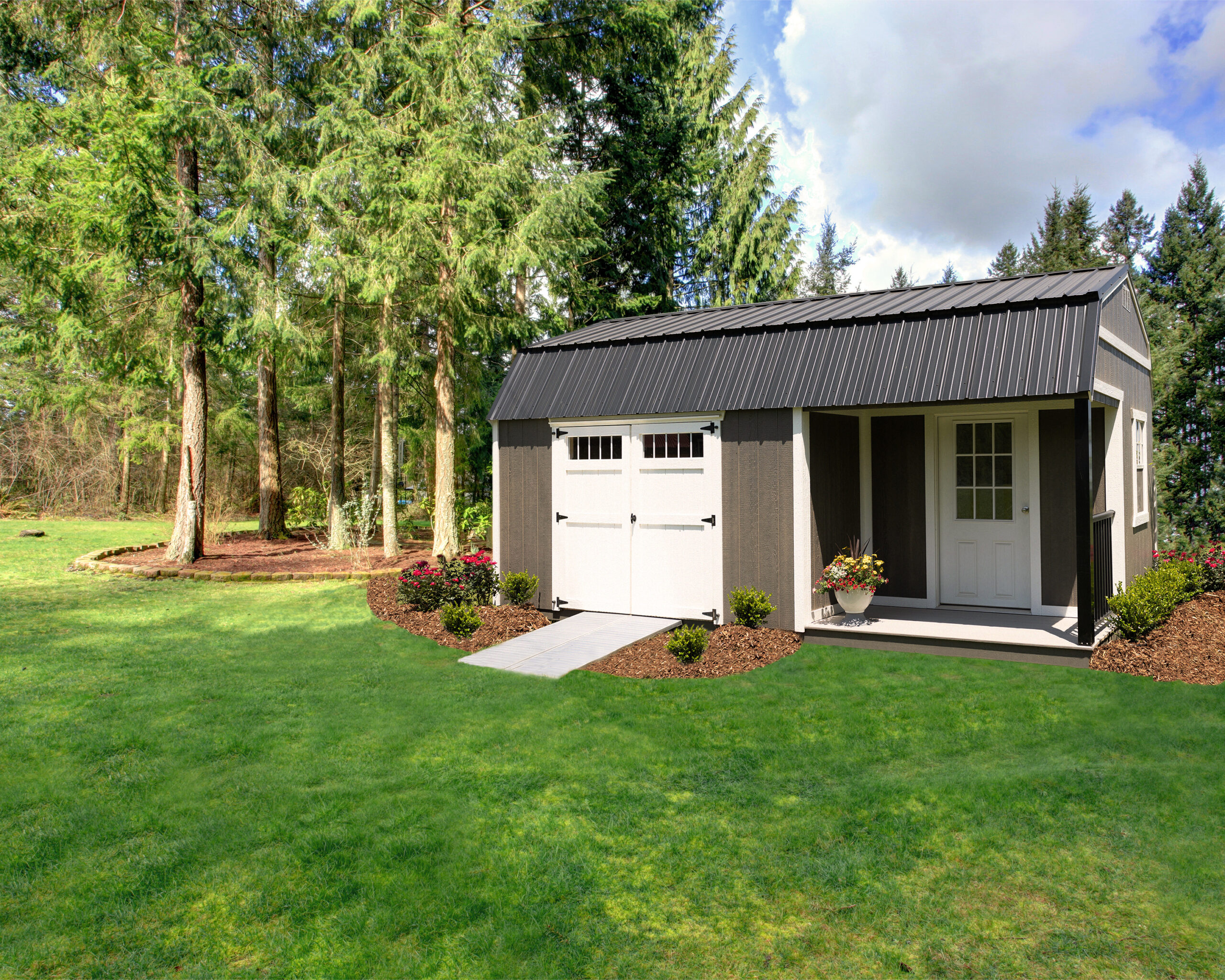 The Lofted Side Porch Shed offers the perfect blend of classic barn charm and modern versatility. With its iconic design and spacious layout, this shed is a blank canvas for whatever you need—a cozy office space, a dedicated hobby hut, or a peaceful retreat to escape the hustle and bustle.